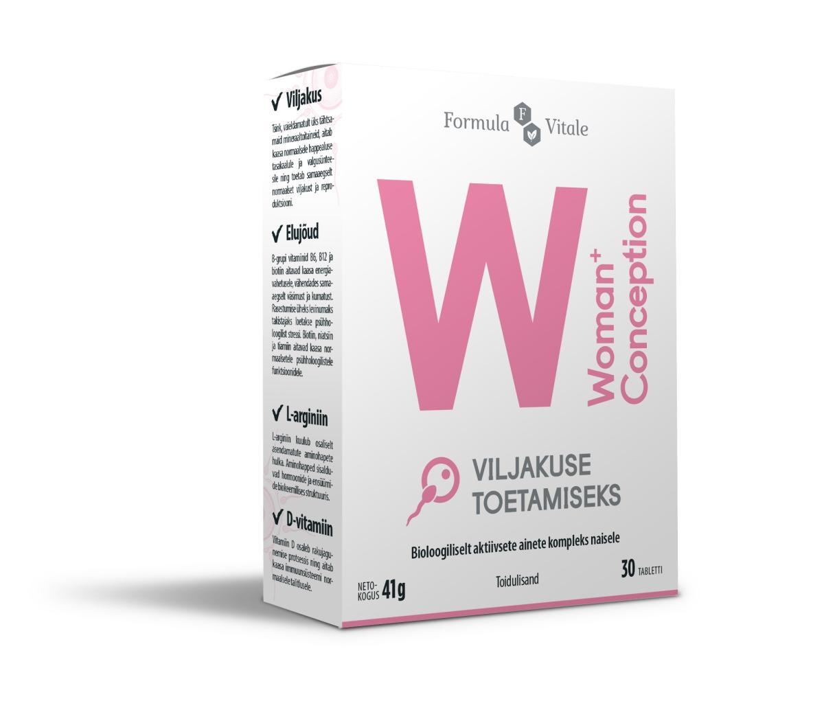 Tootetutvustus Formula Vitale - ENERGIAT IGASSE PÄEVA! Bioloogiliselt aktiivsete ainete kompleks naistele viljakuse toetamiseks. Toetab naiste viljakust, elujõudu ja reproduktsiooni ning sisaldab märkimisväärses koguses foolhapet. WOMAN+ CONCEPTION on bioloogiliselt aktiivsete ainete kompleks, mis täiendab tasakaalustatult NAISE organismi oluliste vitamiinide, mineraaltoitainete ja taimsete koostisosadega, sisaldades muuhulgas märkimisväärses annuses foolhapet. WOMAN+ CONCEPTION toetab viljakust...