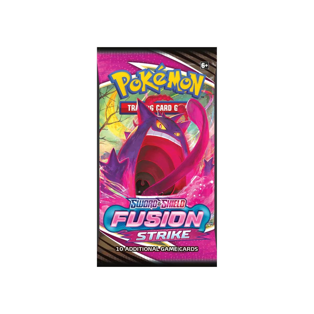 A new strategy unites styles! The path ahead reveals limitless potential as the new Fusion Strike style emerges, drawing on the boundless spiritual power of both Pokémon and Trainers! New adaptive Pokémon V—such as Genesect V, Hoopa V, and Mew VMAX—are ready for battle, while Single Strike and Rapid Strike Pokémon shine in their Gigantamax forms: Rillaboom VMAX, Cinderace VMAX, and Inteleon VMAX. Go with the flow and discover powerful new strategies in Pokémon TCG: Sword & Shield—Fusion Strike! Each booster contains 10 random cards and 1 basic Energy from the set. We ship a randomly selected booster!