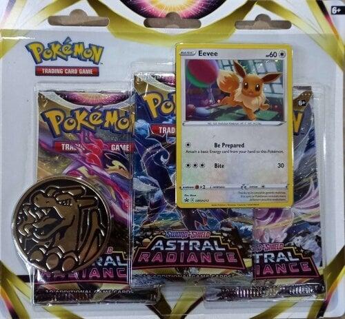 Eevee & Friends Light Up with Stellar Colors! From fluffy and fiery to freezing and fanciful, Eevee and its many Evolutions hold a special place in the hearts of Pokémon Trainers across the land! Discover their unique new powers as Stellar Tera Pokémon ex, and look for treasure of your very own across a grand gathering of Pokémon ex from Paldea and beyond. Glittering gems and hidden patterns await at the end of the rainbow in the Pokémon TCG: Scarlet & Violet—Prismatic Evolutions expansion!Contains: 5x Prismatic Evolutions Booster Packs 1x fun accessory pouch featuring Eevee’s smiling face.