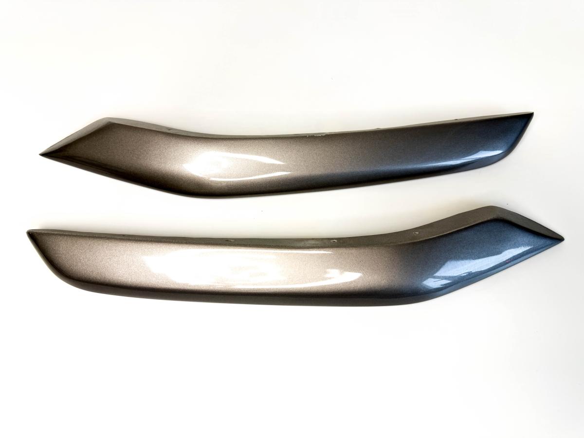 Dekoratiivsed sisetükid BMW X5 F15 sõidukite (2013-2018) M-kujulisele kaitserauale. Need sisetükid paigaldati tehases ainult sportlikele BMW X5M F85 mudelitele. Need on sarnased originaalosadega, mille tootenumbrid on 51118056867 ja 51118056868. Hind on kahe tüki komplekti kohta, paremale ja vasakule poolele. Materjal: klaaskiud. Valmistatud 3D-printimise abil. Seejärel töödeldakse detaili ja valmistatakse see ette värvimiseks. Kantakse peale polümeerkruntvärv, seejärel värvitakse alusvärviga, värvitakse originaalgrafiitvärviga ja lakkitakse.