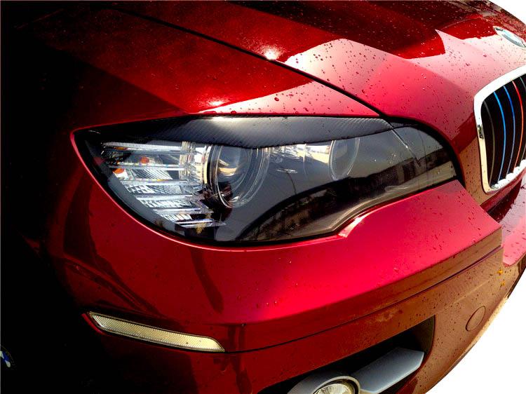 Süsinikkiust esitulede katted BMW X5 E71-le. Need kitsendavad esitulesid visuaalselt, andes neile moodsa ja sportliku ilme. Materjal: süsinikkiust viimistlusega klaaskiud. Kahepoolne teip on komplektis.