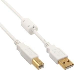 USB 2.0 cable, InLine®, AM to BM- USB Type A male to USB type B male- gold plated contacts- backward compatible with USB 1.1- color: white- with ferrite core (USB A-side)- 2xAWG24 + 2xAWG28Kaabli pikkus10 mUSB versioon2.0Pistmik 1USB APistmik 2USB BConnector genderMale/MaleToote värvValge1. pistmiku kujutegurSirge2. pistmiku kujutegurSirgePistmikukontaktide kateKuldAWG-juhtme läbimõõt24/28Kogus pakendi kohta1