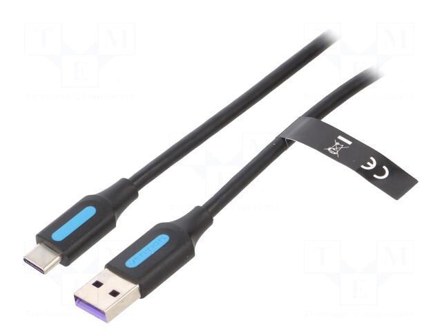 Vention COKBC USB-A 2.0 to USB-C charging cable, 0.5m (black).The Vention COKBC is a charging cable with nickel-plated USB-A and USB-C plugs. The cable's core is made of tin-plated copper, guaranteeing excellent conductivity and durability. The protective PVC sheath provides extra durability and resistance to daily wear and tear. The transmission speed is 480Mbps. This cable can be used to charge numerous devices such as phones, tablets and electronics with a Type-C port. The set includes: Vention COKBC cableBrand Vention Model COKBCLength50cm Color Black Interface USB-A/USB-CTransfer speed 480Mbps Rated current 3A