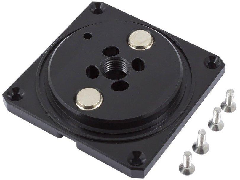 Replacement base part for aqualis base for pump adapters (450 and 880 ml versions). Scope of delivery: One base part Two o-ring gaskets (preinstalled) Two sealing screws G1/4 (preinstalled) Four countersunk head screws M4 x 12 mm