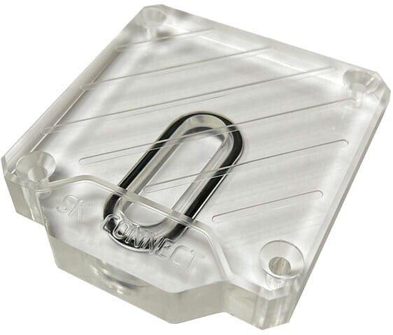 Product information "SK Connect Adapter" The SK Connect adapter is used to connect the chambers of our distroplates (SK2 & Crosscool) to each other. The pump therefore no longer has to be installed on the distroplate and can be placed anywhere in the case. Scope of delivery: • 1x SK Connect adapter • 4x M4 screws Technical details: • Product dimensions: Dimensions (W x H x D): 74 x 81 x 15 mm • Color: Transparent • Material: acrylic glass, plastic country of origin: Germany