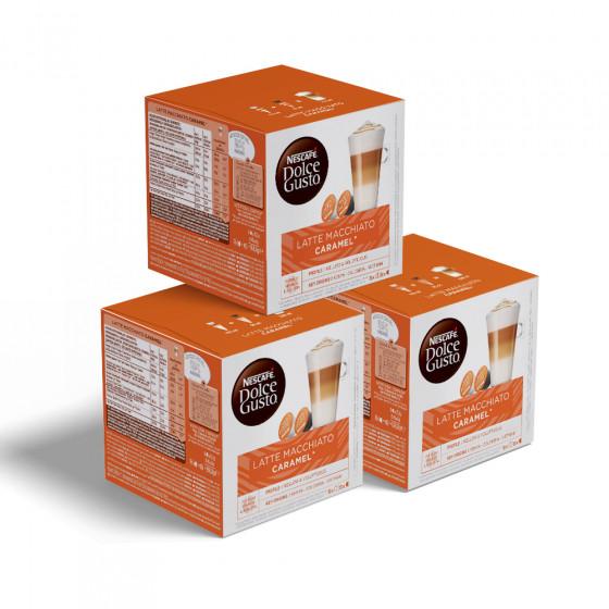 Avasta suurejooneline NESCAFÉ® Dolce Gusto® Caramel Latte Macchiato. Piimasem kui Cappuccino, on see kihiline Itaalia ikoon segu kuumast piimast, karamelli maitsest, mõnusast kohvist ja lopsakast vahust.NESCAFÉ® Dolce Gusto® andekad kohviloojad on täiustanud NESCAFÉ® Dolce Gusto® Caramel Latte Macchiato kahe kapsli retsepti: üks kapsel espresso jaoks, spetsiaalne rikkalik segu kõrgklassi Araabika ja Robusta nelja erineva riigi kohviubadest, muuhulgas mahedad Brasiilia ja riikkalikult puuviljased Kolumbia Araabika kohvioad. Teine kapsel sisaldab karamellimaitselist täispiima.Omadused: Kihiline Itaalia ikoon kuumast piimast, karamelli maitsest, mõnusast kohvist ja lopsakast vahust. See tuleb kahes kapslis, üks espresso ja teine karamellise piima jaoks.- Leebe piimane maitse tasakaalustatud kohvi aroomidega, segatult magusa karamelli maitsetega. Kreemine tekstuur helde ja lopsaka piimavahuga.- Kohvikapsel sisaldab kõrgeima kvaliteediga mõnusat Brasiilia ja rikkalikult puuviljast Kolumbia Araabika kohviuba, segatult Vietnami Robusta kohviubadega. - Kohvi värskus säilib hermeetiliselt suletud kapslites, mis on spetsiaalselt loodud NESCAFÉ® Dolce Gusto® kapselkohvimasinatele, et sa saaksid alati nautida rikkalikku kohviaroomi.- 8 kohvikapslit ja 8 piimakapslit 8 (220 ml) NESCAFÉ® Dolce Gusto® Caramel Latte Macchiato jaoks.Koostis:Piimakapsel: täispiimapulber (54,4%), suhkur (41,9%), maitseained, emulgaator (sojaletsitiin). Kohvikapsel: röstitud ja jahvatatud kohv.