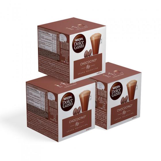 Avasta pehme maitsega NESCAFÉ® Dolce Gusto® Chococino. See pole lihtsalt tavaline kuum šokolaad. Chococino on iseloomulik oma šokolaadise maitse, vanilje nootide ning maitsva,tihke ja šokolaadise vahu poolest.NESCAFÉ® Dolce Gusto® Chococino on valmistatav kahest kapslist: ühes kapslis šokolaadipulber ja teises - kreemine täispiim.Omadused:- Pehme maitsega šokolaadijook, kahes kapslis. Üks kapsel sisaldab šokolaadipulbrit, teine - kreemist täispiima.- Magus šokolaadine maitse vanilje nootide, kreemise tekstuuri ja tihke vahuga.- 8 šokolaadikapslit ja 8 piimakapslit et valmistada 8 NESCAFÉ® Dolce Gusto® Chococino tassi.- Disainitud kasutamiseks NESCAFÉ® Dolce Gusto® kapselkohvimasinates.Koostis: Valge kapsel: täispiimapulber (89,7%), suhkur (10,1%), emulgaator (sojaletsitiin).Pruun kapsel: šokolaadipulber (98,7%) (suhkur, kakao), emulgaator (sojaletsitiin), naturaalsed maitseained, kaneel. Võib sisaldada piima. Vähemalt 32% kuiv kakao.