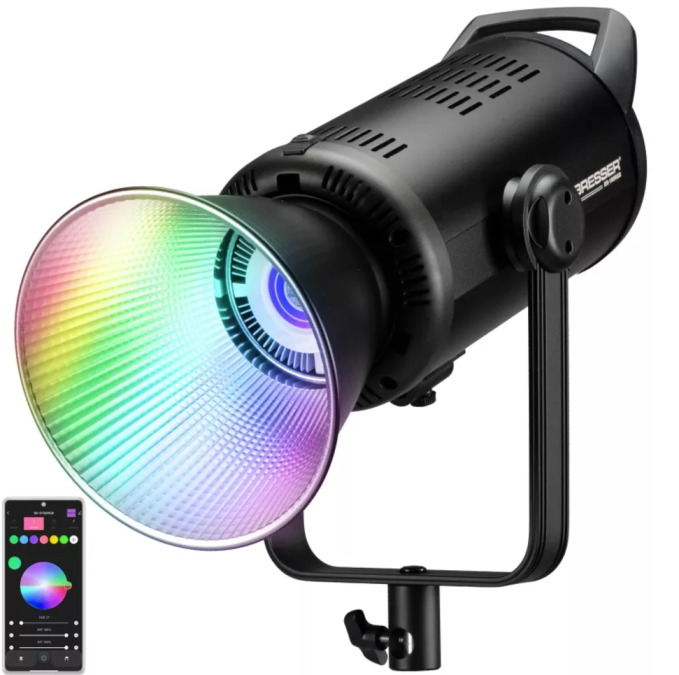 COB-LED-valgusti Bresser BR-135RGB pakub tugevat, 135 W võimsusega RGB-valgustust koos võimalusega värve 360° reguleerida, valida valguse temperatuuri vahemikus 2700–6500 K ja valgust värelusteta dimmerdada. Ideaalne pildistamiseks, videosalvestuseks ja otseülekanneteks. Valgusti ühildub Bowensi S-bajonetiga ja seda saab sujuva töö tagamiseks juhtida ka äpi kaudu.