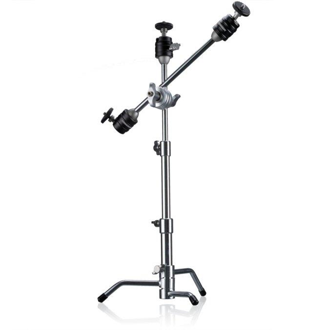 Poomstatiiv BR-C24 BRESSER C-Stand on tugev alumiiniumstatiiv, mis on mõeldud fotostuudiotele, suudab kanda raskeid Fresneli lampe ja muud stuudiovarustust. Reguleeritava pikendusvarrega seadet saab liigutada igas suunas ning selle metallkonstruktsioon tagab vastupidavuse. Statiiviga on kaasas tihvtühendus valgustite või välklampide kinnitamiseks ja klamber eri läbimõõduga torude jaoks. Sellel statiivil on õhkvedrustus sujuvaks kõrguse reguleerimiseks, maksimaalne kõrgus on 300 cm ja kandevõime 8 kg. Ideaalne professionaalsete stuudiote jaoks.