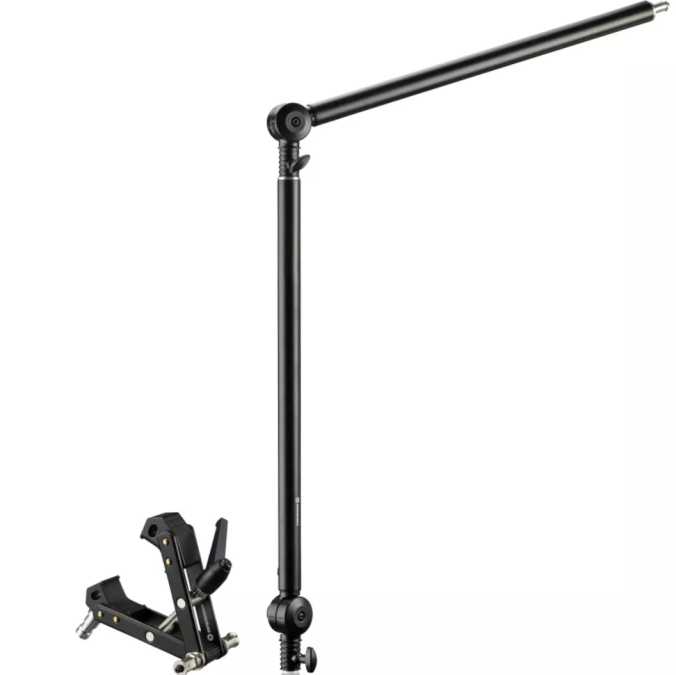 Muuda oma stuudio optimaalsemaks, kasutades statiivivart BRESSER BR-05B Space Arm. Sellel 121 cm pöördvarrel on kaks tugevat metallosa, reguleeritavad hinged ja 1/4-tolline tihvtiadapter. Koos tugeva Multiclampi kinnitusega kannab see kuni 12 kg raskust ja käib valgustistatiivide, lauaplaatide või torude külge, et tagada Sulle mitmekülgne valgustus ja tarvikute paigutus.