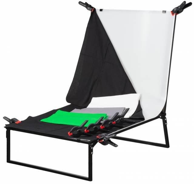 Tee oma toodetest meie suure ja stabiilse pildistamislaua abil optimaalseid fotosid. Sellel laual on kahepoolne akrüülklaasist plaat, millel on nii matt kui ka läikiv viimistlus, pakkudes paindlikkust ja professionaalseid tulemusi. Alumiiniumraami on lihtne kokku panna, mistõttu on see ideaalne kvaliteetseid tootefotosid eesmärgiks seadnud veebipoodidele. Kaasas klambrid ja kandekott.