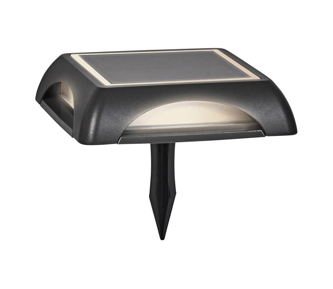 Hämaruse anduriga LED päikeselamp. Paindlik paigaldus - seina- ja põrandakinnitus või maapealne paigaldus maapealsete piikidega. Lihtne ja kiire paigaldus, mis ei sõltu vooluvõrgust. Valatud alumiiniumist korpus. Aku laadimisaeg: 8 tundi. Süttib automaatselt, kui läheb pimedaks. Heledust saab reguleerida kolmes astmes.