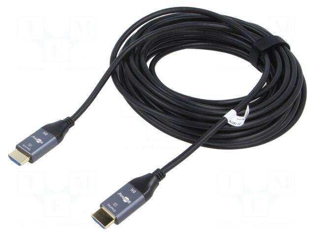 Optiline Ultra High Speed HDMI™ kaabel on ideaalne lahendus kuni 100 m kauguste ühenduste loomiseks, pakkudes oluliselt suuremat paindlikkust ja kõrgemaid andmeedastuskiirusi kui tavaline vaskkaabel.Toetab kõrglahutusega UHD signaali edastust kuni 8K @ 60 Hz (4320p), maksimaalse edastuskiirusega kuni 48 Gbit/s, samuti kõiki levinud funktsioone nagu ARC (Audio Return Channel), HDCP või 4K sisu 3D-ga.8K AOC kaabel (Active Optical Cable) HDMI™ pistikutega ja hübriidse fiiberoptilise vaskjuhtmega, mis tagab häirevaba signaali edastuse.Tänu AOC tehnoloogiale suudab kaabel edastada signaale pikkadel distantsidel ilma kadudeta ja saavutada kõrgeid andmeedastuskiirusi ilma võimenduseta.Fiiberoptiline kaabel teisendab elektrilised andmesignaalid optilisteks ning kaabli teises otsas tagasi elektrilisteks (ühesuunaline).Õhukesed ja tugevad metallist pistikud koos paindekaitsega on eriti mugavad kitsastes paigalduskohtades.Ultra High Speed HDMI™ kaabel ühendab telerid ja monitorid mängukonsoolidega nagu PlayStation 5 või Xbox Series X, samuti projektorid ja voogedastusseadmed, näiteks Amazon Fire TV või Apple TV. Fiiberoptiline materjal muudab kaabli väga paindlikuks, võimaldades väikest painderaadiust.