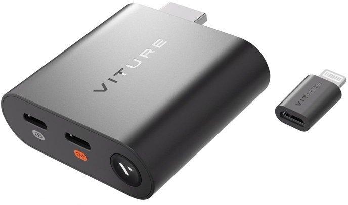 Viture XR HDMI adapter for iPhone Viture XR HDMI Adapter for iPhoneThe HDMI XR Adapter from VITURE is a device designed for iPhone users who want to use the full capabilities of their smartphone in conjunction with VITURE XR glasses. This compact accessory allows you to turn your phone into a mobile work or entertainment station, offering access to virtual screens, XR space and VR-quality video playback. It works with iPhone 14 and older models, allowing you to transfer video to XR glasses.Work and entertainment anywhereWith the HDMI XR adapter, you can watch movies, play games and work using virtual screens that display directly on your VITURE XR glasses. This solution not only increases convenience, but also allows you to better use the potential of your iPhone anywhere - without the need for a monitor or TV.Expanded compatibility and fast connectionThe adapter supports HDMI 1.4b and two USB ports - one with 5V 2.4A charging, the other with USB 2.0 data and DP video transmission. It is also compatible with micro USB, supporting Lightning connector adapters. The device works with iPhones (models up to and including 14), VITURE XR glasses and powerbanks, adding flexibility to a variety of situations.Watch and charge at the same timeYou don't have to worry about a discharged phone while watching a movie or playing a game. The adapter allows you to charge and use your iPhone at the same time, greatly extending your work and entertainment experience. The built-in 1770 mAh battery provides up to 2.8 hours of operation without additional power.Compact design and low weightThe dimensions of the adapter are only 58.7 × 54.0 × 18.5 mm, and it weighs less than 58.5 grams, making it easy to fit in a pocket or bag. It's a great option for those looking for a mobile solution for viewing, working and gaming on a larger screen - without sacrificing convenience and quality.IncludedHDMI adapterLightning to micro USB adapterHDMI cableuser manual ManufacturerVitureModelV1236Dimensions58.7 × 54.0 × 18.5 mmWeight58,5 gConnectivityHDMI 1.4b; USB-C1: Supports 5V 2.4A charging; USB-C2: Supports DisplayPort and USB 2.0 signal; Micro USB: Supports Micro USB to Lightning adapterCompatibilityiPhone 14 and older models, iPad Pro 12.9" (2nd generation) and older models, VITURE XR glasses, powerbank, PlayStation 5/4; Xbox X/S/One, laptop with HDMI portBattery capacity1770 mAhOperating timeup to 2.8 h | 9 | 82,40 € | Vaata | ||