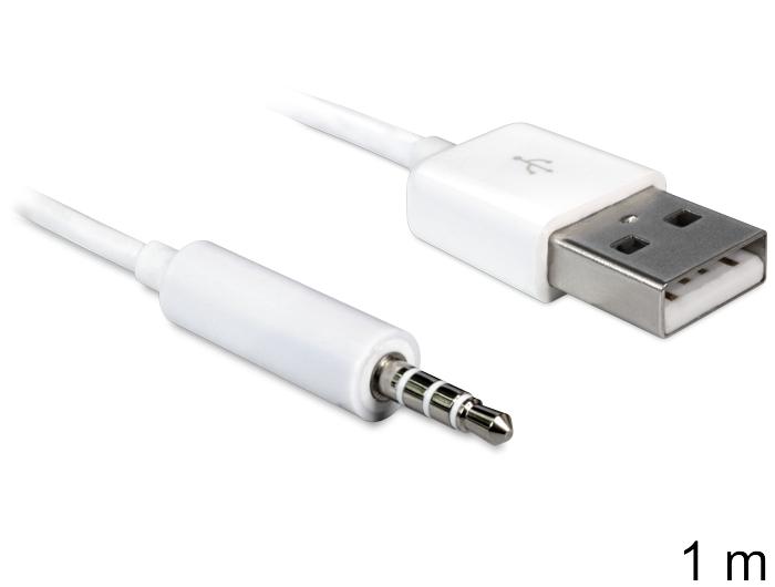 This USB to stereo jack cable is compatible to IPod shuffle 1 and 2 and can be connected to a free USB port of your computer. It supports the charging function as well as the data transfer between your system and the IPod shuffle. Specification • Suitable for IPod Shuffle generation 1 and 2 • Function: charging and data transfer • Connector: USB-A male > stereo jack 3,5 mm male • Stereo jack 4 pin • Length: ca. 1 m • Colour: white System requirements • A free USB port Package content • Cable